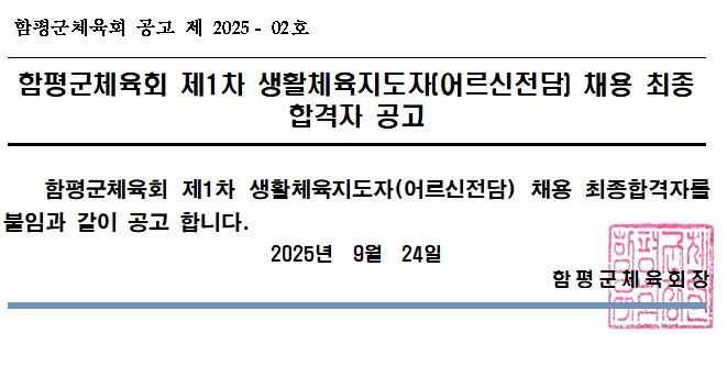 ÇÔÆò±ºÃ¼À°È¸ Á¦1Â÷»ýȰüÀ°ÁöµµÀÚ Ã¤¿ë ÃÖÁ¾ÇÕ°ÝÀÚ °ø°í.hwp